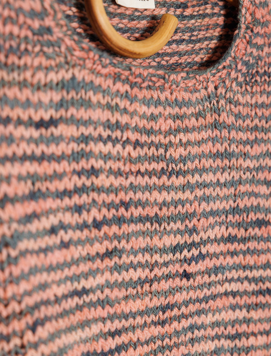 Turn garment inside out to wash to avoid rubbing of the hand-spun yarn.