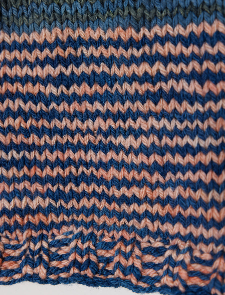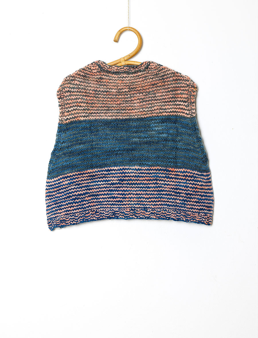 Designed using yarn offcuts from the adult Colours from Clouds vest collection, Little Clouds is a collection of merino vests created in four multi-coloured colourways – an exercise in following the magic of chance and flow to create something out of yarn which would otherwise go to waste.