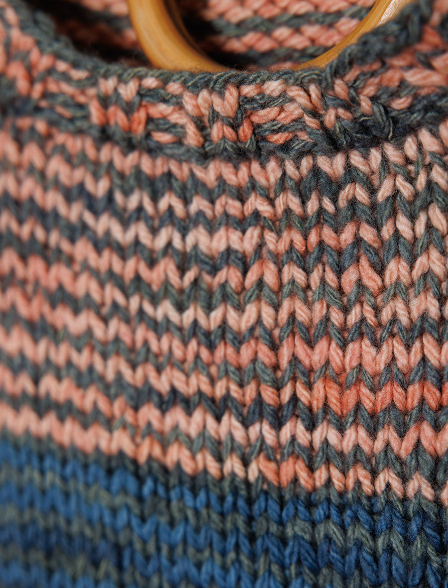 Turn garment inside out to wash to avoid rubbing of the hand-spun yarn.