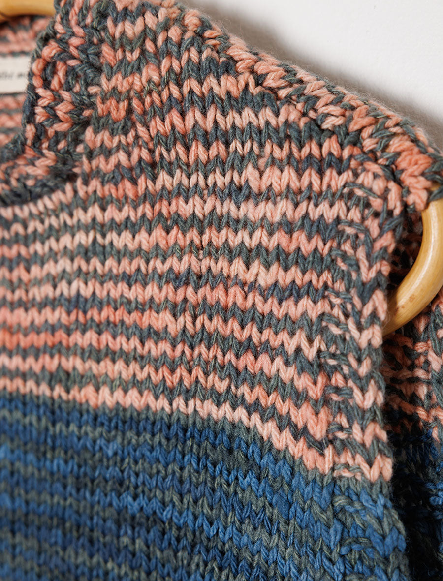 Handknitted by our artisan partners located in the foothills of the Himalayas, each Little Clouds vest has been created with care by women artisans who are often mothers themselves. The yarn used in these vests is a special hand-spun merino wool sourced from New Zealand. It is scoured using bio-enzymes and then then dyed using Indigo, Myrobalan, Pomegranate and Sappanwood extracted from natural origins from various parts of India.
