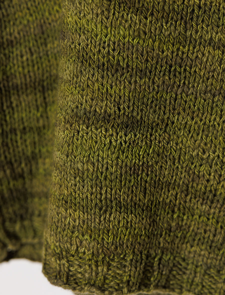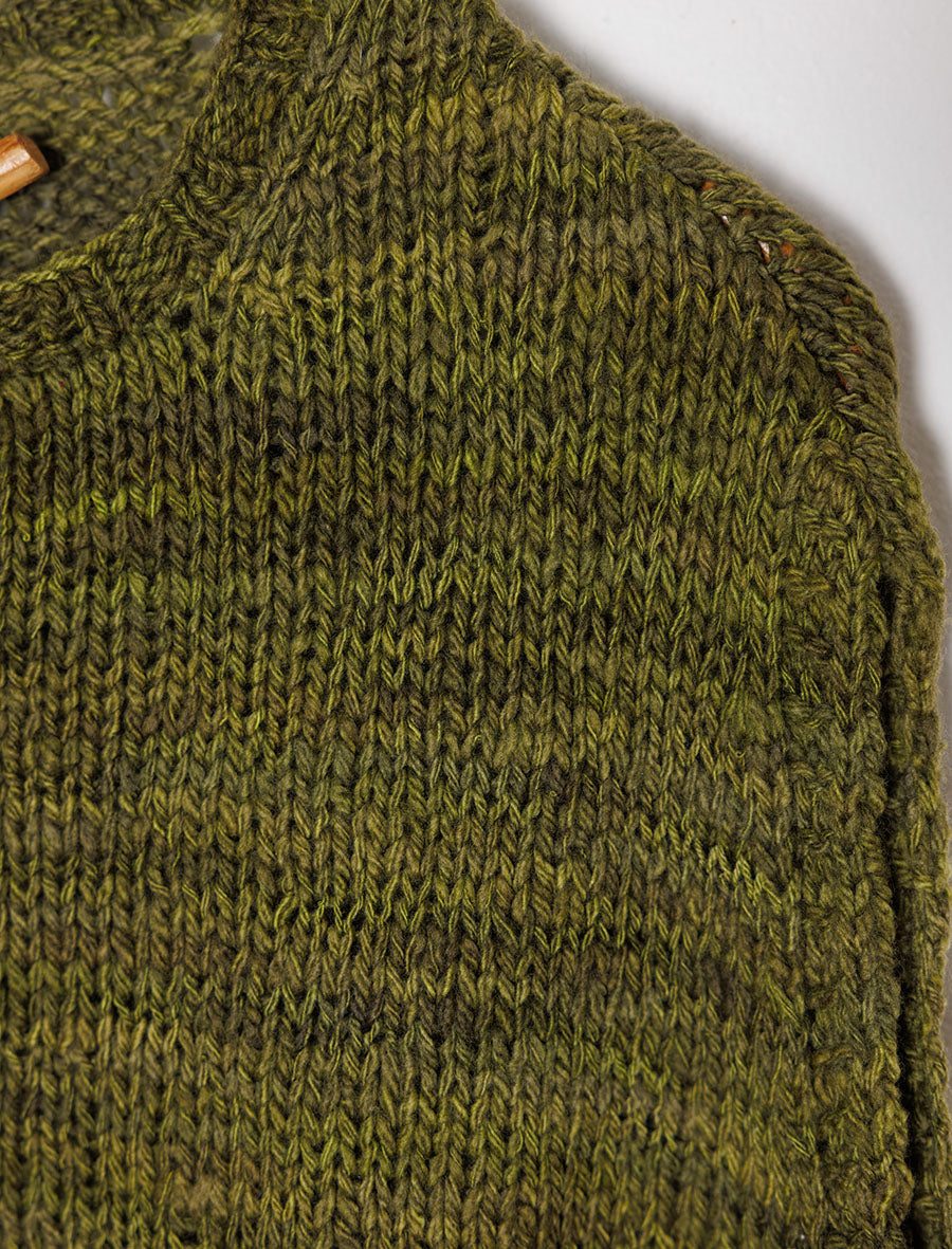 Turn garment inside out to wash to avoid rubbing of the hand-spun yarn.