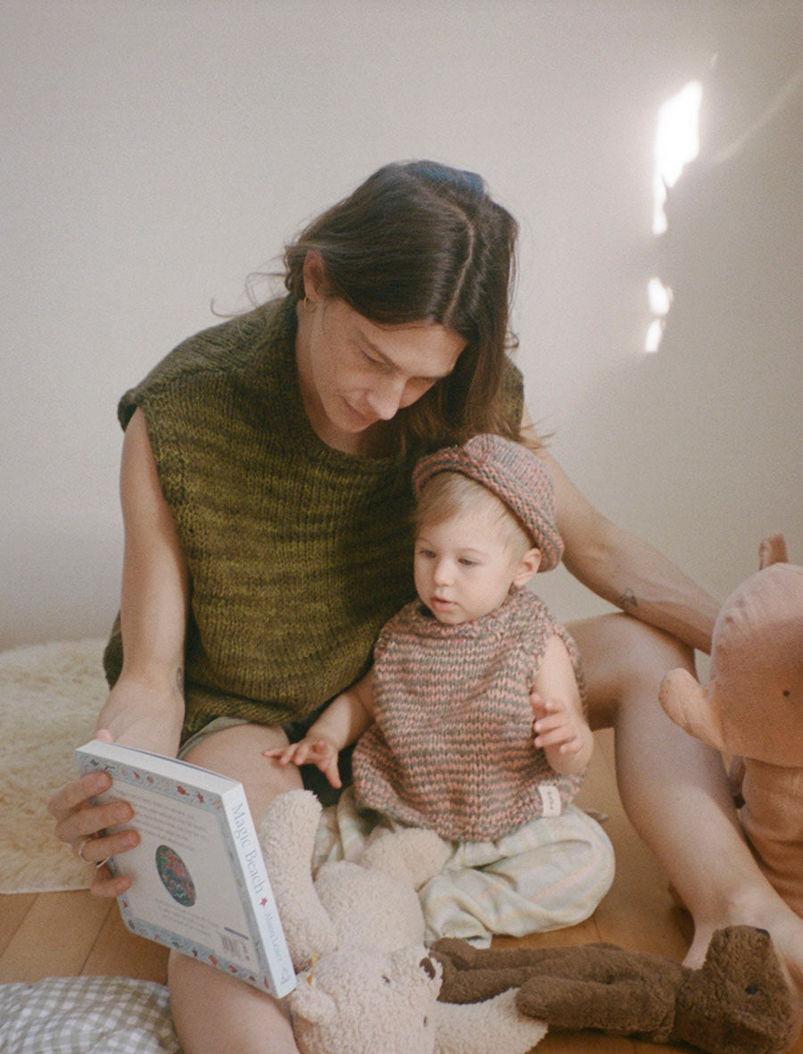 Each vest has been hand-knitted by the same partners who create all of our knitwear. Located at the foothills of the Himalayas in Northern India, these artisan knitters are all women who are able to work from home, allowing them to earn money while caring for their children and families. We love to imagine the hands and hearts who work slowly on these vests, and the stories and vibrant activity that surrounds them as they knit.