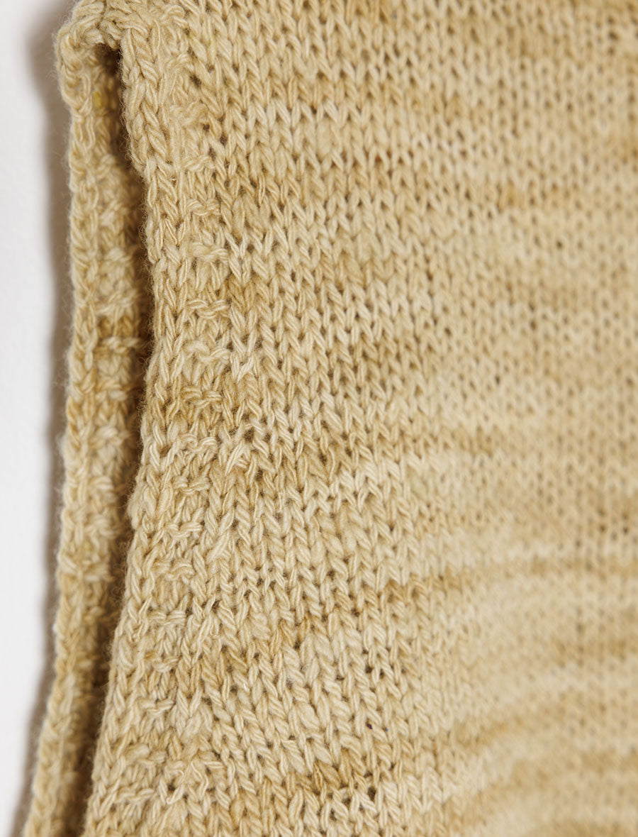 Turn garment inside out to wash to avoid rubbing of the hand-spun yarn.