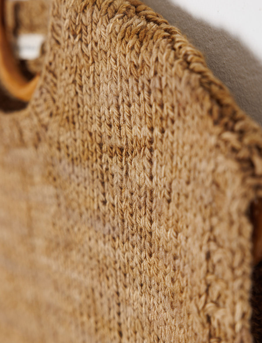 Each vest has been hand-knitted by the same partners who create all of our knitwear. Located at the foothills of the Himalayas in Northern India, these artisan knitters are all women who are able to work from home, allowing them to earn money while caring for their children and families. We love to imagine the hands and hearts who work slowly on these vests, and the stories and vibrant activity that surrounds them as they knit.