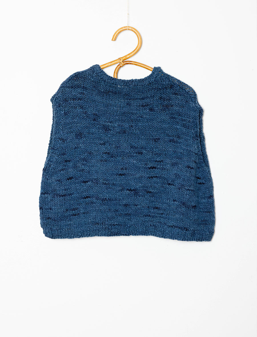 Each vest has been hand-knitted by the same partners who create all of our knitwear. Located at the foothills of the Himalayas in Northern India, these artisan knitters are all women who are able to work from home, allowing them to earn money while caring for their children and families. We love to imagine the hands and hearts who work slowly on these vests, and the stories and vibrant activity that surrounds them as they knit.