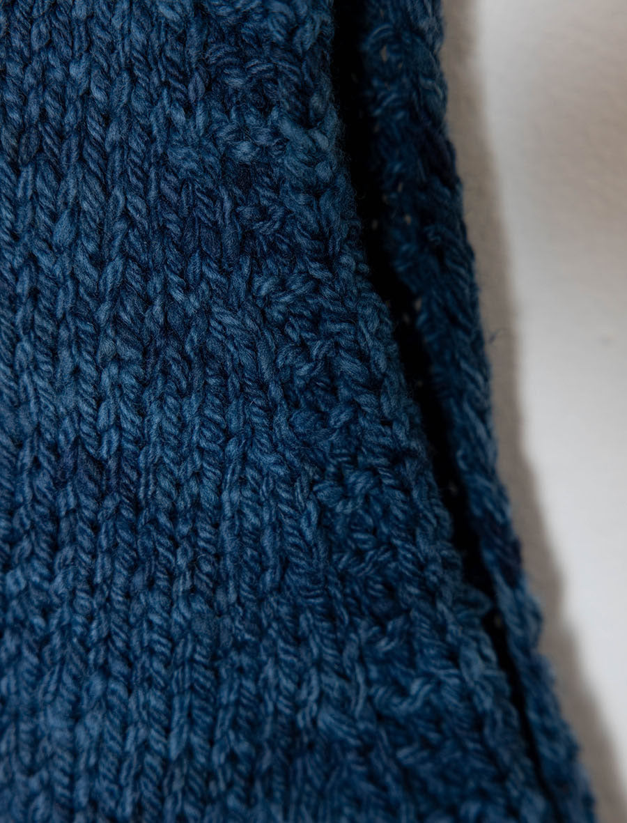 Turn garment inside out to wash to avoid rubbing of the hand-spun yarn.