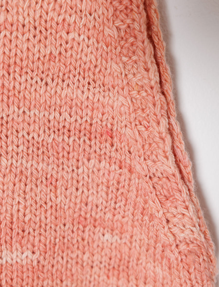 Turn garment inside out to wash to avoid rubbing of the hand-spun yarn.