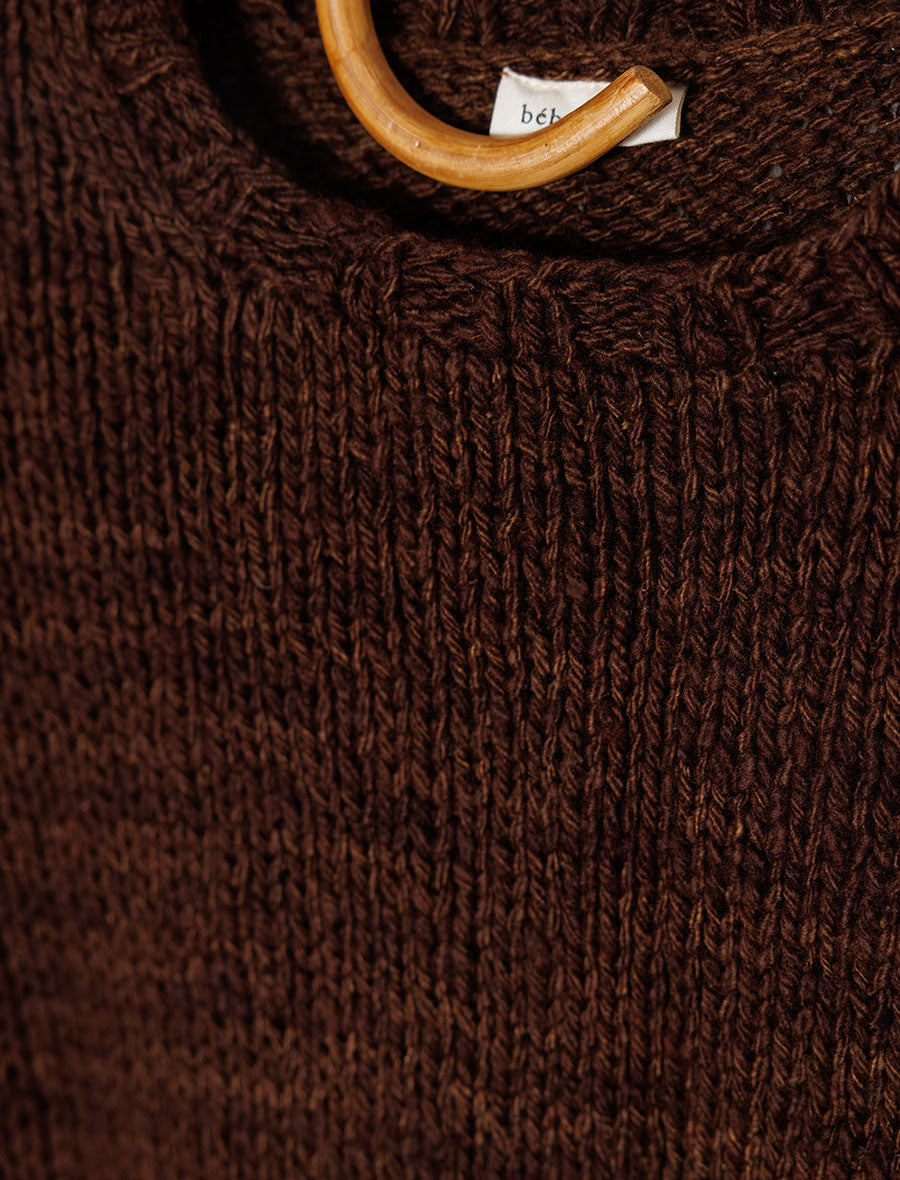 Turn garment inside out to wash to avoid rubbing of the hand-spun yarn.