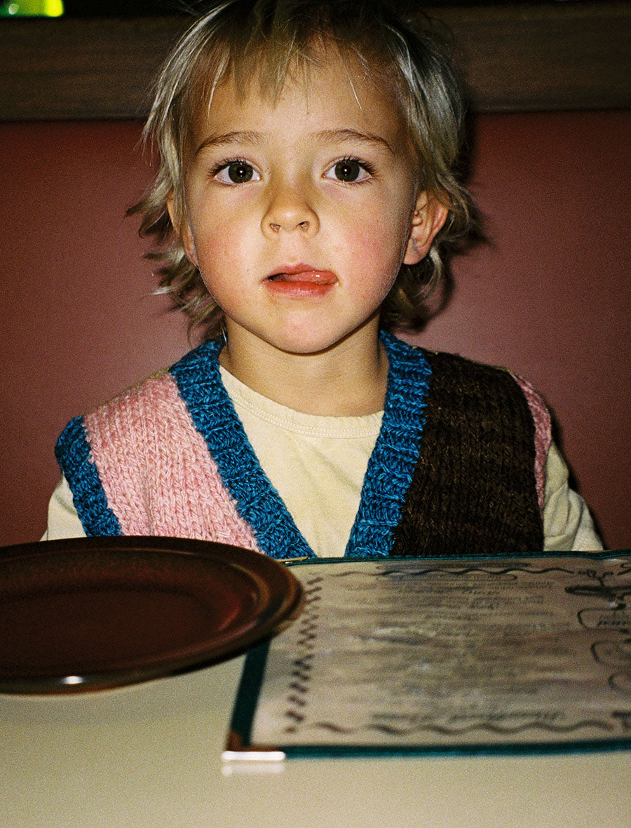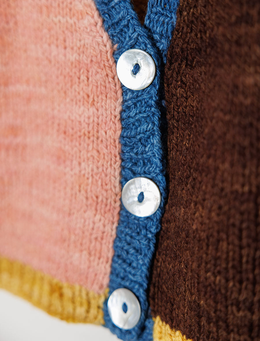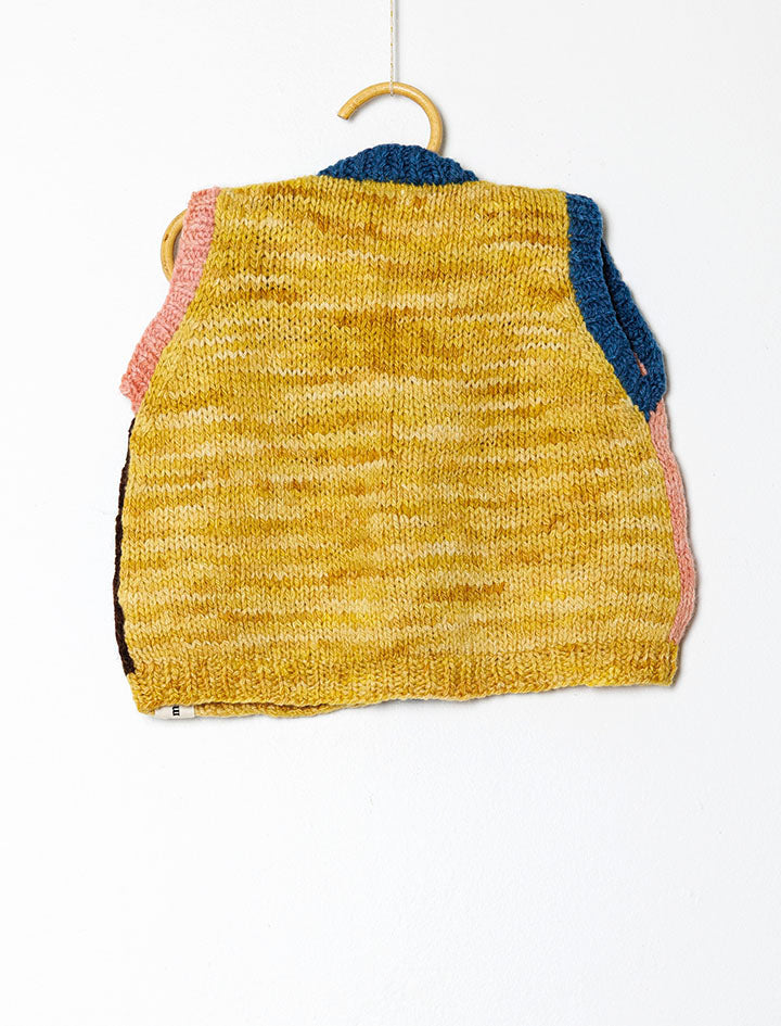 Handknitted by our artisan partners located in the foothills of the Himalayas, this vest has been created with care by women artisans who are often mothers themselves. The yarn used in these vests is a special hand-spun merino wool sourced from New Zealand. It is scoured using bio-enzymes and then then dyed using Sappanwood, Indigo, Kamala, Catechu and Walnut extracted from natural origins from various parts of India.