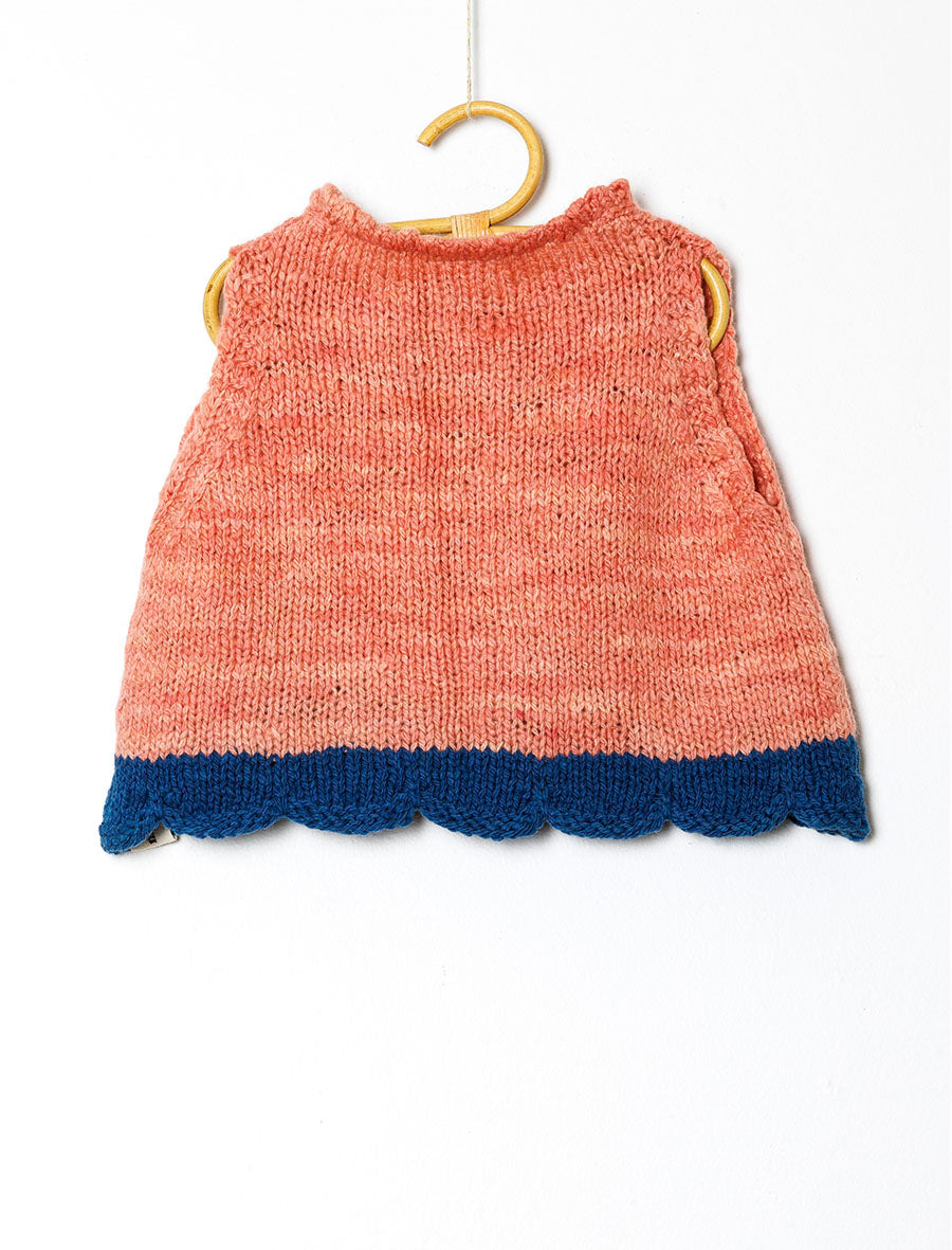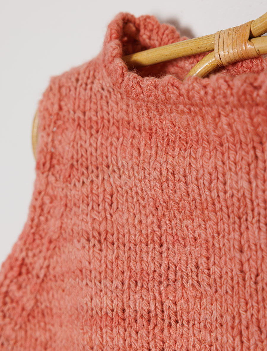 Handknitted by our artisan partners located in the foothills of the Himalayas, this vest has been created with care by women artisans who are often mothers themselves. The yarn used in these vests is a special hand-spun merino wool sourced from New Zealand. It is scoured using bio-enzymes and then then dyed using Sappanwood and Indigo extracted from natural origins from various parts of India.