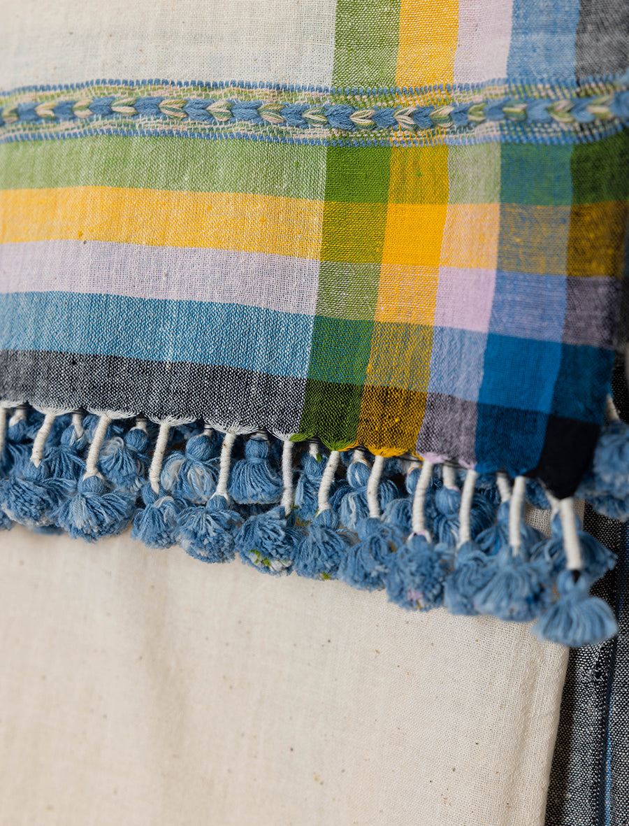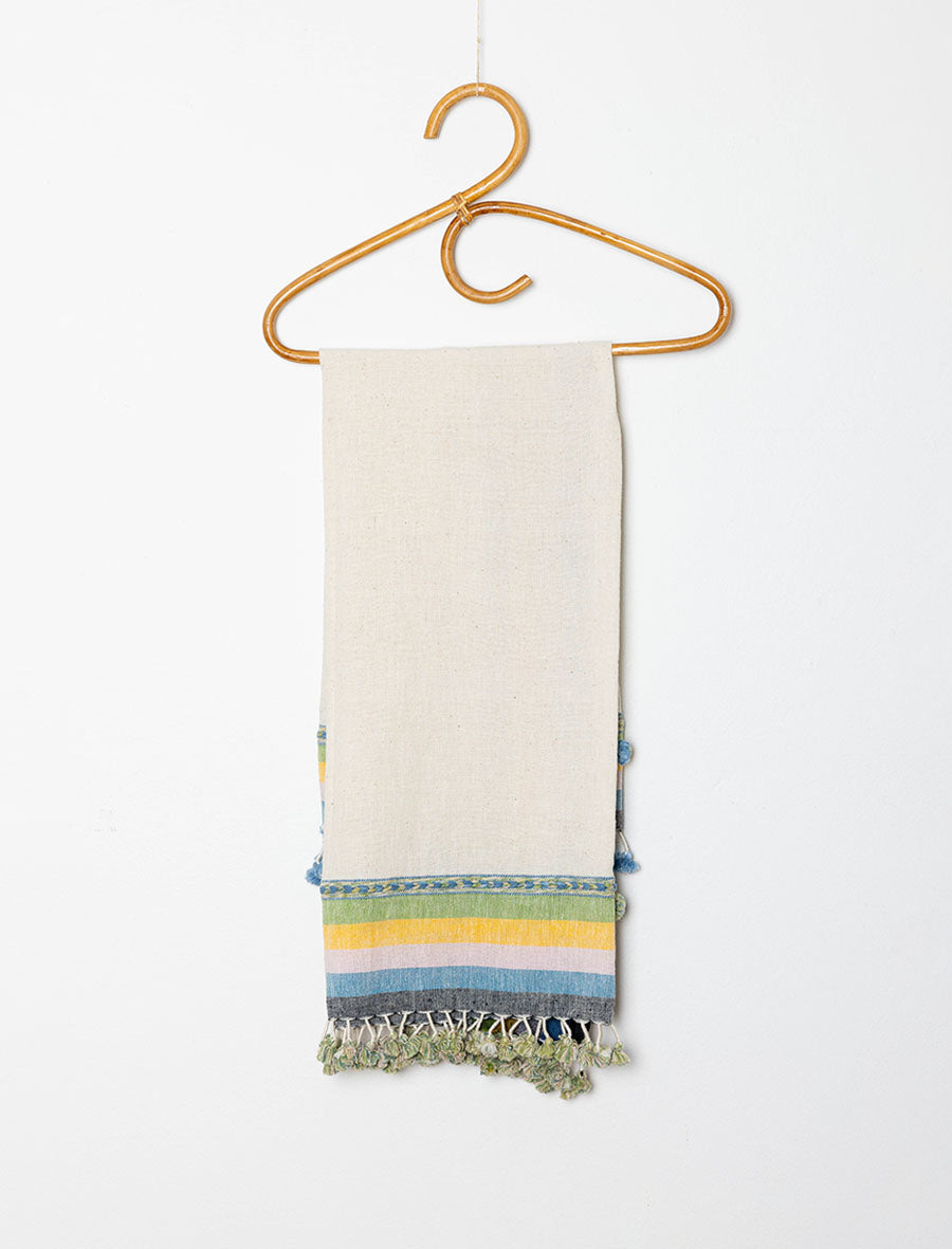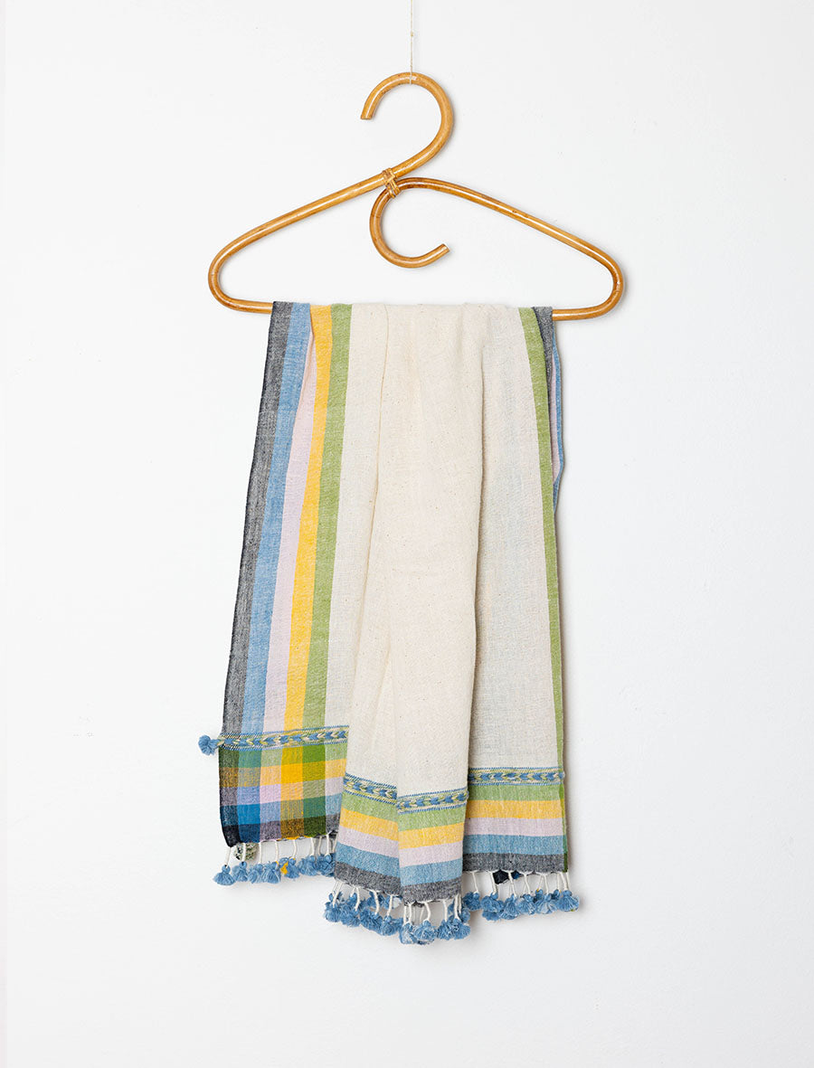 Hand-loomed Moiré border in softness of soft 5 colour stripe. Woven by our artisan partners in Gujarat, India using Kala cotton thread - the original pure old world cotton of India.